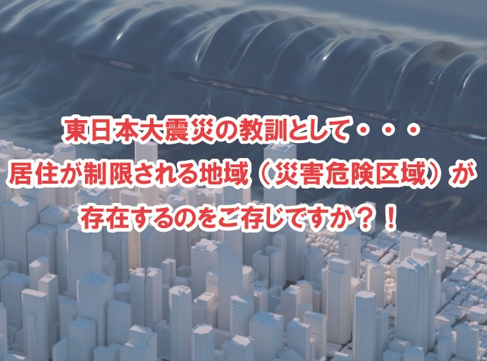 そもそも災害危険区域とは、津波や高潮、出水(洪水)などの自然災害よる危険性が高い場所に指定されるもので、指定されると住宅(戸建・マンション)の建築は禁止されます。 大規模災害が起きた被災地に指定し、区域内の建築物を制限や禁止することで災害による被害を予防することを目的としています。