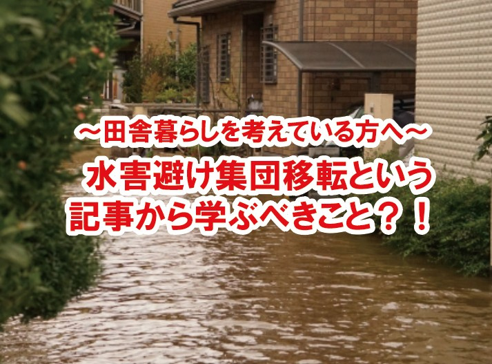 大規模な水害に備えた新たなまちづくりの仕組みが動き出すようです。国土交通省は浸水被害の危険が高い地域を指定し、住民に安全な場所への集団移転を促す予定です。自治体の土地造成や住民による住宅ローン返済などの費用の一部を補助する方針です。災害に遭っても被害を減らすためのソフト対策を強化する事で、毎年ように発生する水害被害に考慮した対策です。ちなみに、そのようなエリアに田舎暮らしを考えている方にはぜひ、ご確認いただきたい内容です。